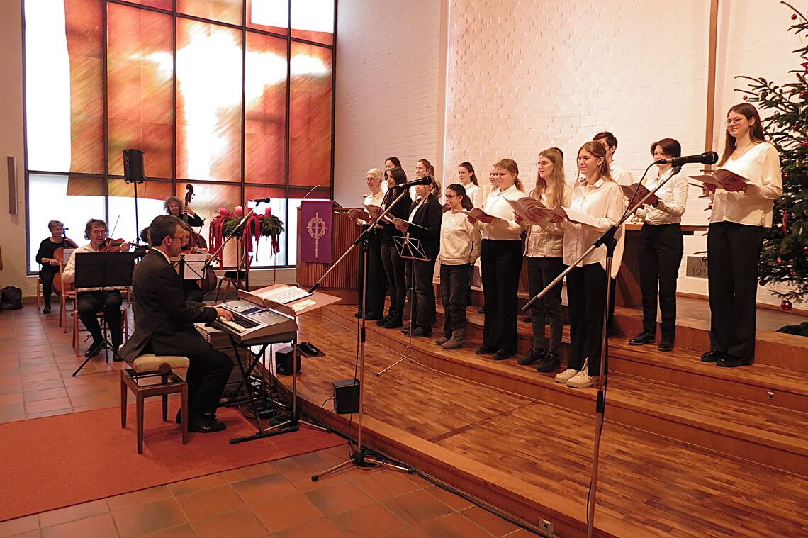 Der Höhepunkt war jedoch unbestritten das traditionelle Adventskonzert, am 4. Adventssonntag innerhalb der Veranstaltungsreihe des Vereins „Grevenbroich handelt“. In den klassischen Teilen unterstützte das Orchester der Jugendkantorei mit einer hervorragenden Begleitung in der Adventskantate „Machet die Tore weit“ von Georg Philipp Telemann und in der Weihnachtskantate „Ihr lieben Hirten, fürchtet euch nicht“ von Andreas Hammerschmidt. Auch die weitere stilistische Vielfalt der modernen Weihnachtslieder aus Deutschland, England und Amerika überzeugte auf ganzer Linie.
